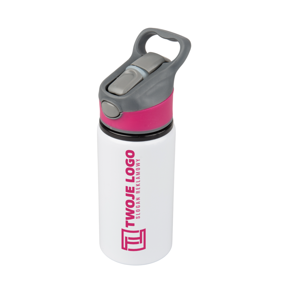 Aluminum 500 ml Active bottle white with pink stripe and mouthpiece