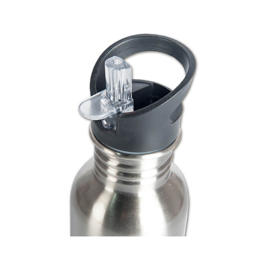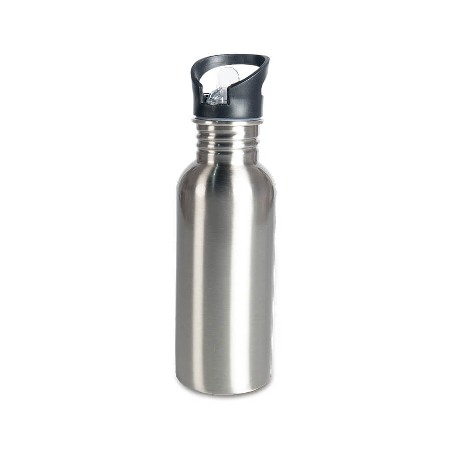 Aluminum 600 ml bottle with mouthpiece silver for sublimation printing.The outside of the bottle is covered with a special coating designed for sublimation.