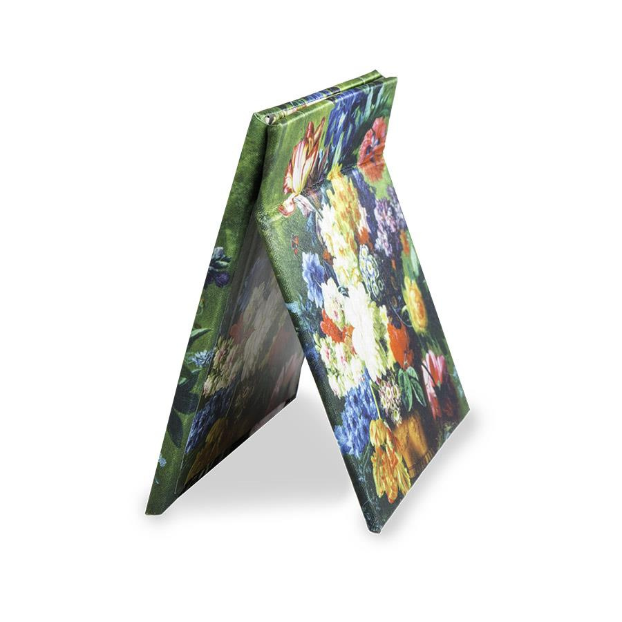 Standing cardboard frame made of cardboard covered with canvas- has a window with a film