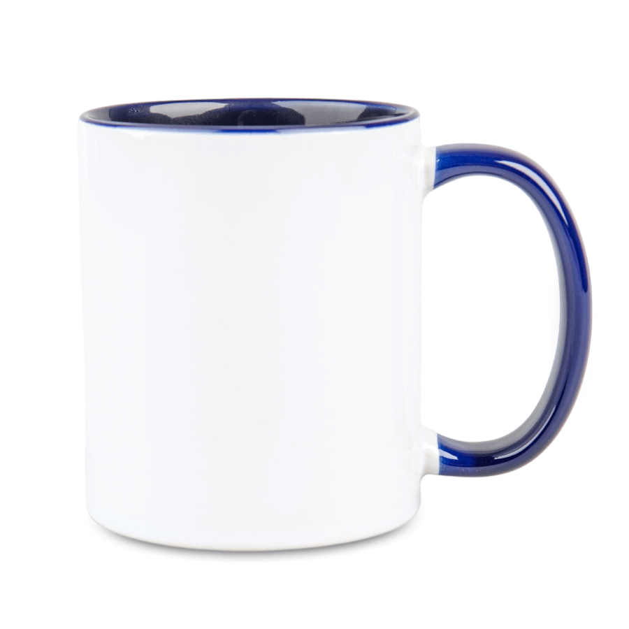 Ceramic mug for sublimation printing. The outside of the mug is covered with a special coating for sublimation.Combo SuperGlaze white mug (inside and handle colored):