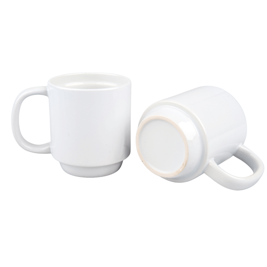 Ceramic mug for sublimation printing. The outside of the mug is covered with a special coating designed for sublimation.