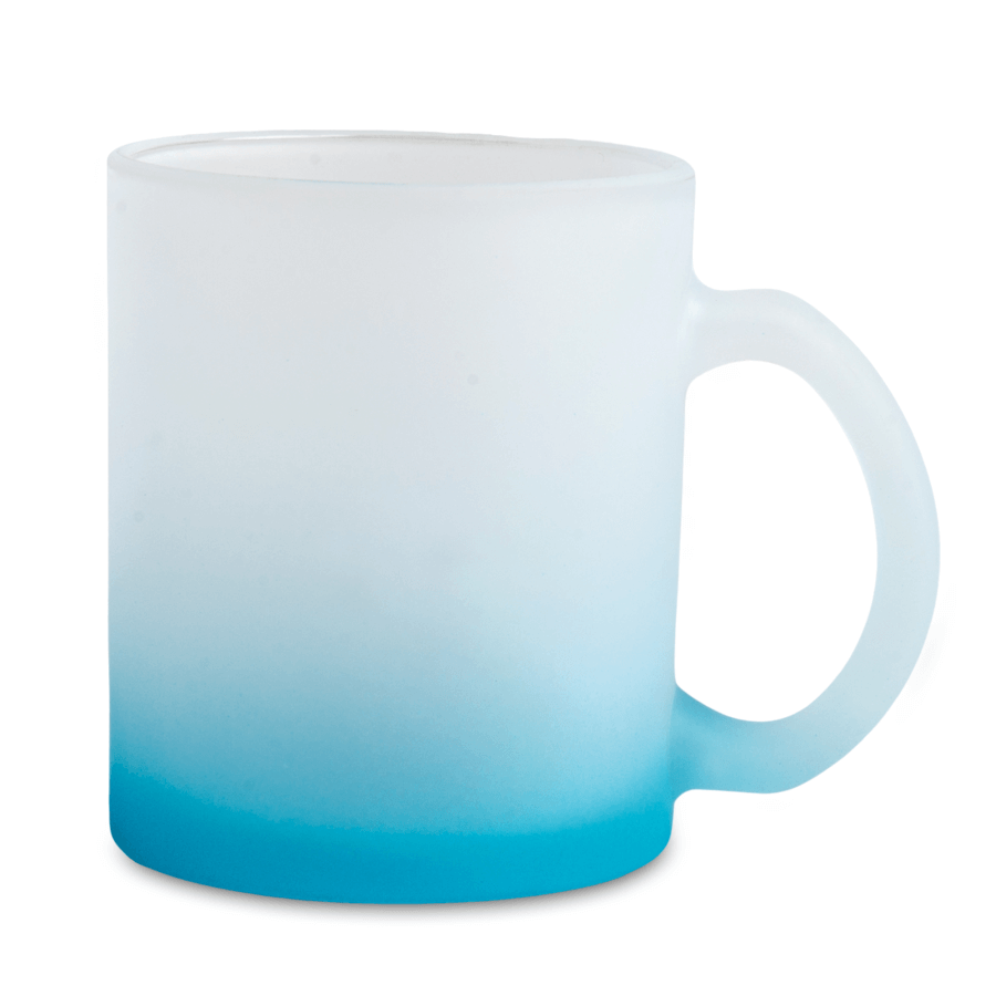 The mug is made of frosted (frosted) glass and has a gradient appearance.