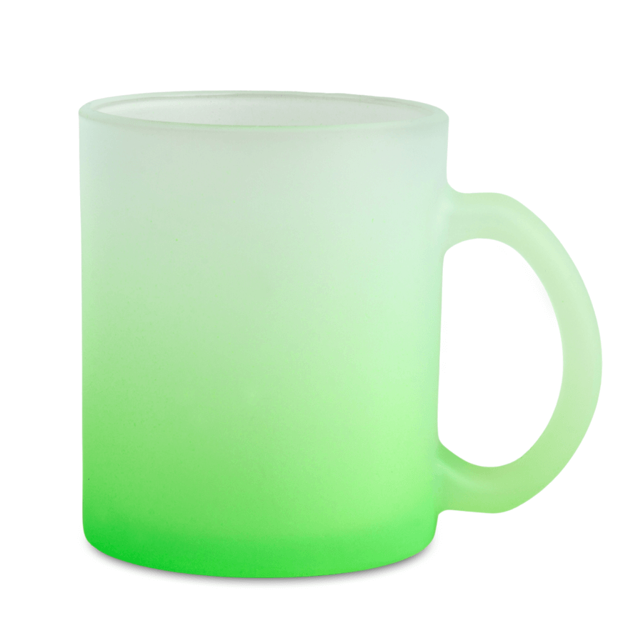 The mug is made of frosted (frosted) glass and has a gradient appearance.
