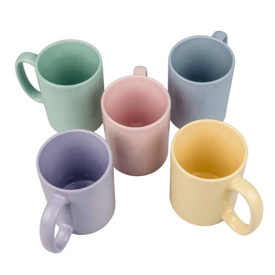 Ceramic mug light for sublimation printing. The outside of the mug is covered with a special coating for sublimation.