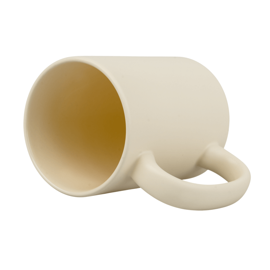 Ceramic mug light for sublimation printing. The outside of the mug is covered with a special coating for sublimation.