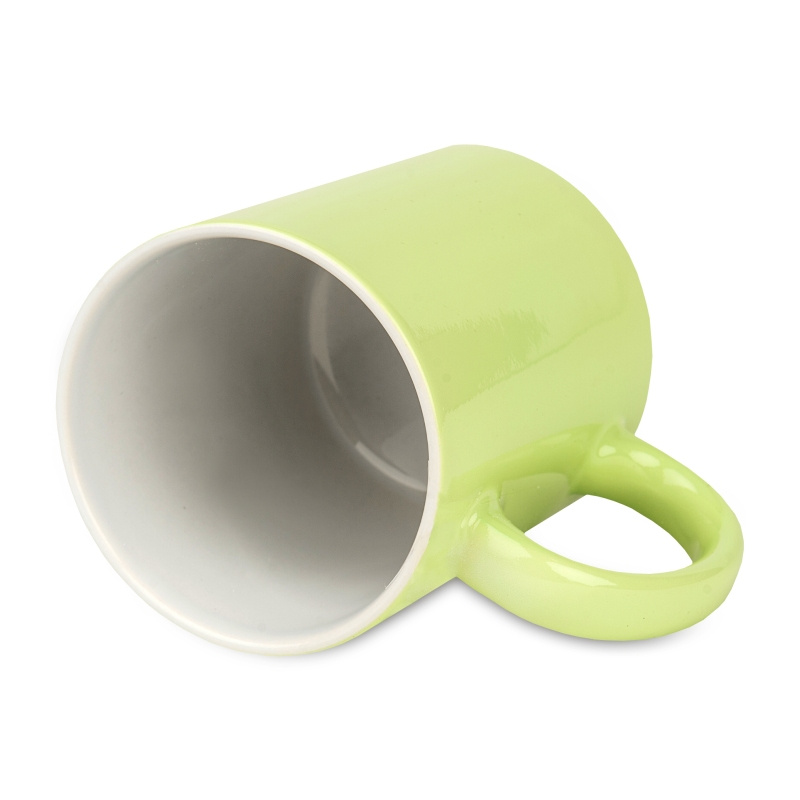Light color green ceramic mug for sublimation printing. The outside of the mug is covered with a special coating designed for sublimation.- color: green