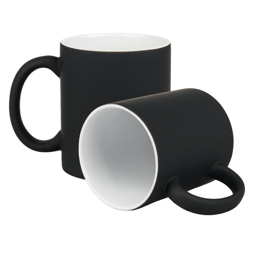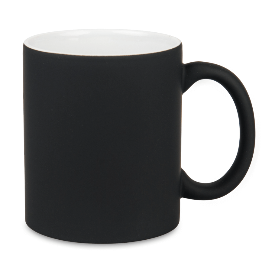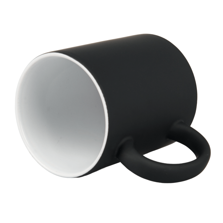 Ceramic mug with rubberized surface. The outside of the mug is covered with a special coating designed for sublimation.Mug with a very distinctive black color. Ideal as a gift and for any advertising or marketing campaign.