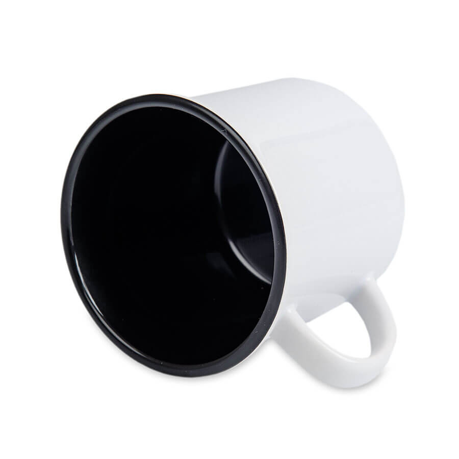 Ceramic mug for sublimation printing. The outside of the mug is covered with a special coating designed for sublimation.