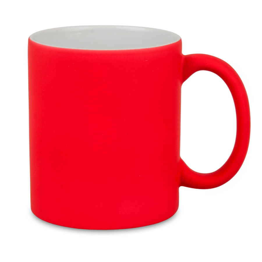 Neon mug, ceramic with rubberized surface, for sublimation printing. The outside of the mug is covered with a special coating designed for sublimation.Neon mug with a very distinctive red color. Ideal as a gift and for any advertising or marketing campaign.