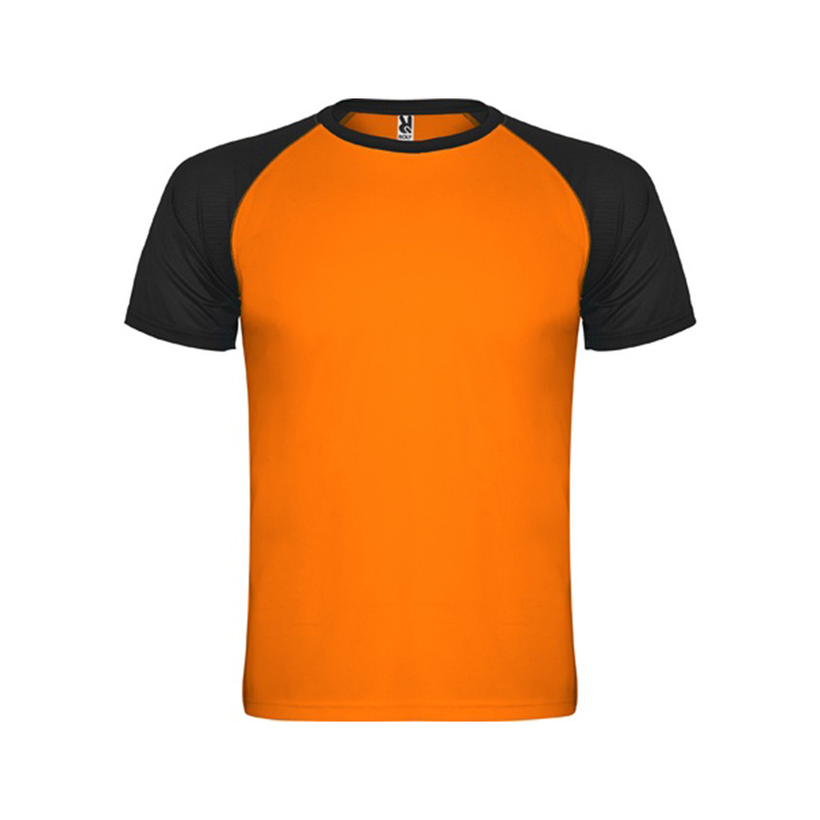 Sports shirt with short raglan sleeves. Sleeves in contrasting color. Round neckline in contrasting color with reinforced covered seams.