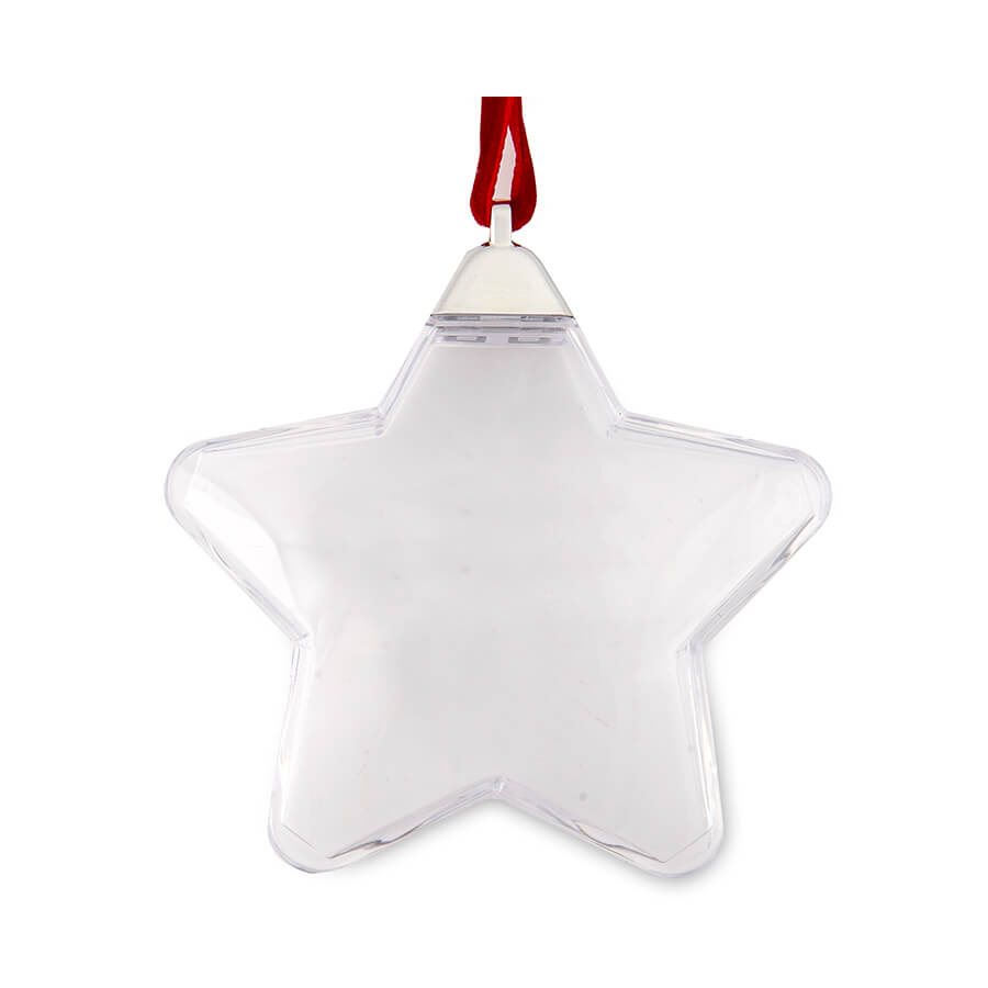 Ornament/bomb for a star-shaped photo ; silver stopper, red ribbon- size: 91 mm x 93 mm x 26 mm