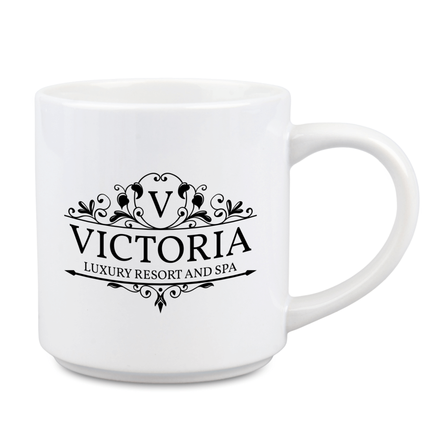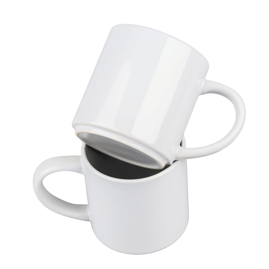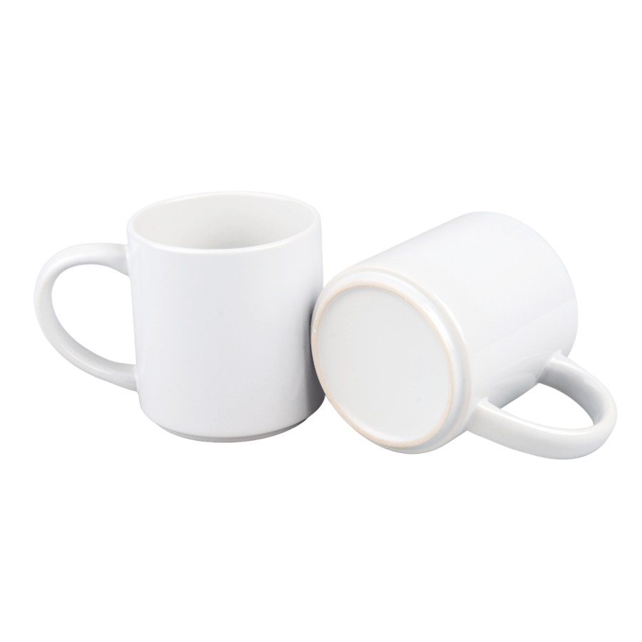 Ceramic mug for sublimation printing. The outside of the mug is covered with a special coating designed for sublimation.Stacker white mug