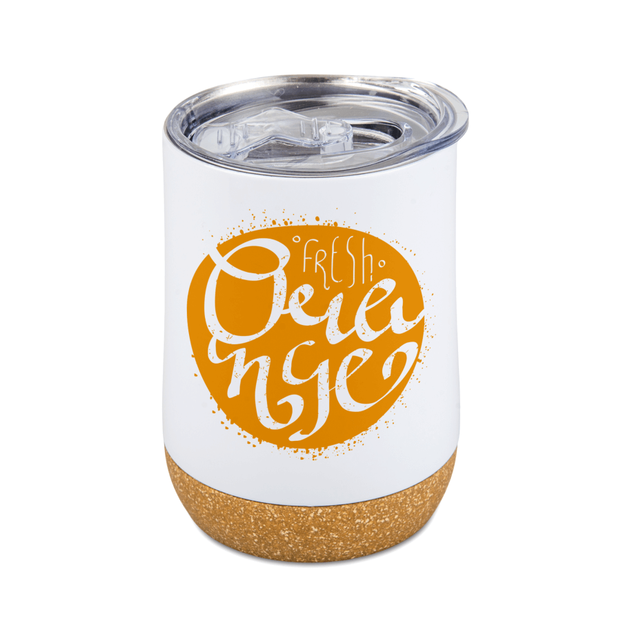 Steel mug 330 ml with cork bottom white