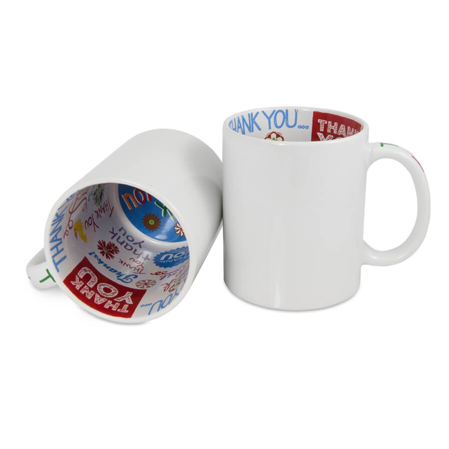 Ceramic mug for sublimation printing. The outside of the mug is covered with a special coating for sublimation.