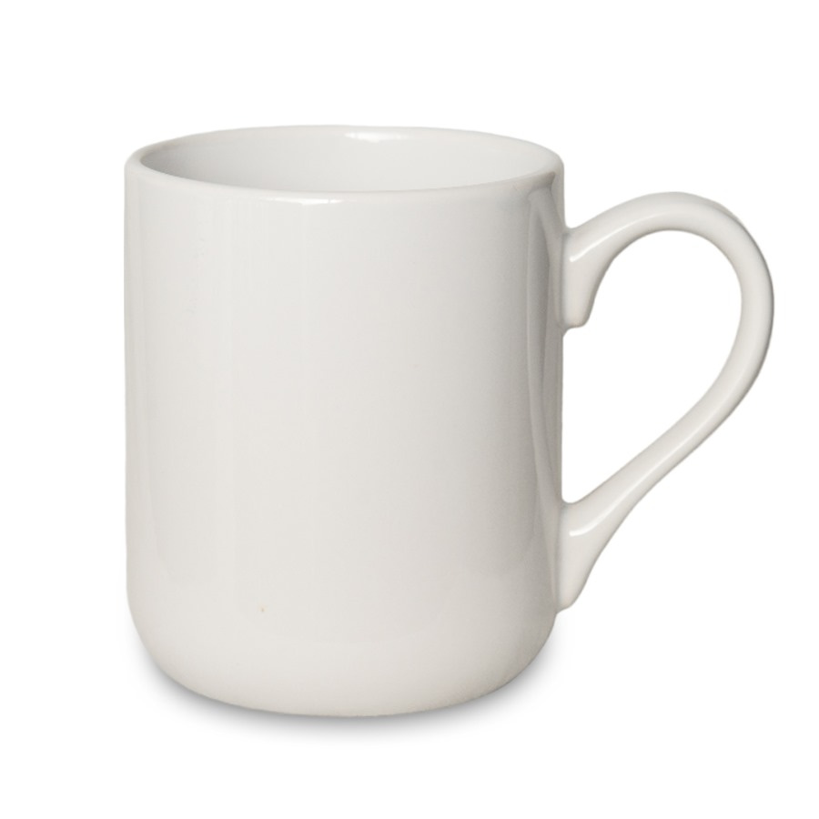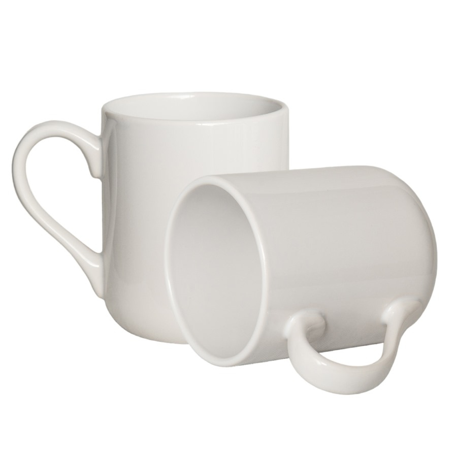 Ceramic mug for sublimation printing. The outside of the mug is covered with a special coating designed for sublimation.White coffee mug 330 ml. Coffee cup with increased capacity and diameter compared to the 290ml version.