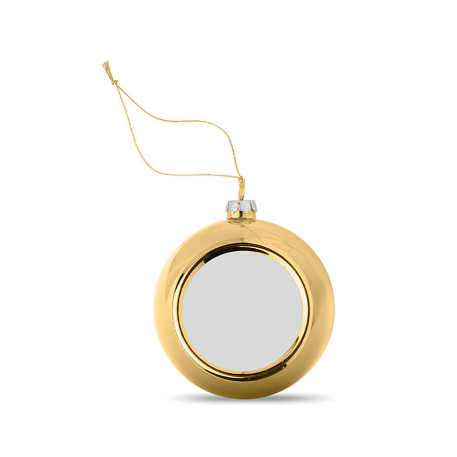 Bombka choinkowa do wykonywania nadruków w technologii sublimacji. Nadruk wykonujemy na białej płytce, która jest dołączona do bombki i po wysublimowaniu przyklejamy na zewnątrz.
