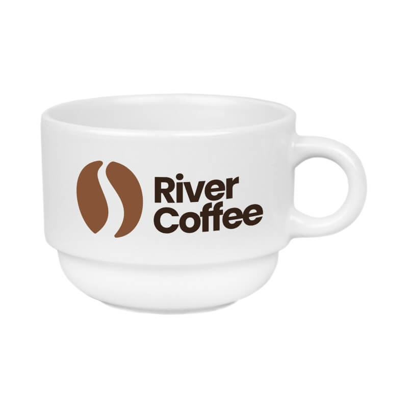 Filiżanka ceramiczna do nadruku metodą sublimacji. Zewnętrzna strona pokryta jest specjalną powłoką do sublimacji.
