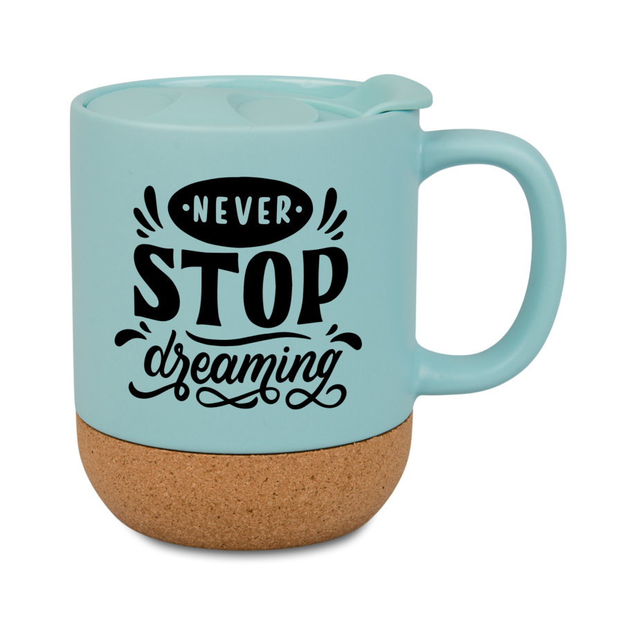Kubek 330ml light kolor z wieczkiem i korkowym spodem - niebieski