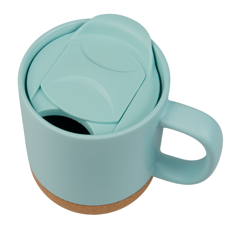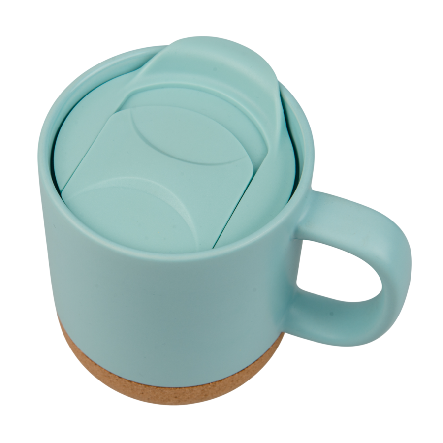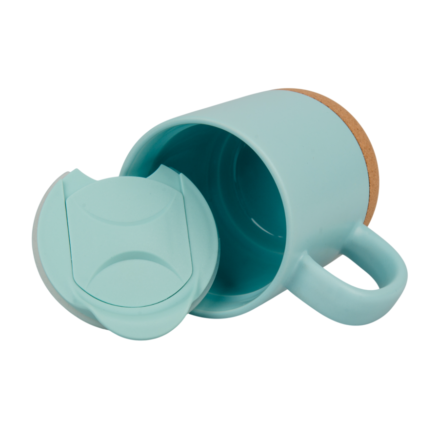 Kubek 330ml light kolor z wieczkiem i korkowym spodem - niebieski karton 36 szt.