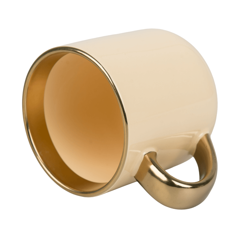 Kubek ze złotym uchwytem i rantem to doskonały dodatek do eleganckiej kawy lub herbaty.