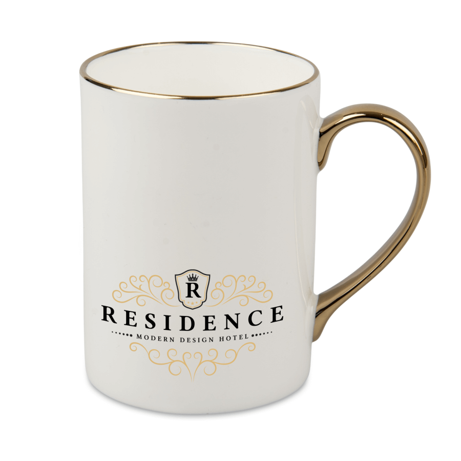 Kubek biały 330 ml porcelanowy złoty rant i uchwyt