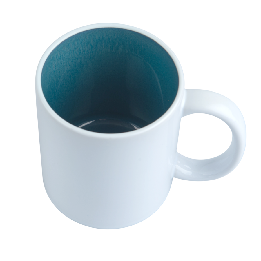 Kubek biały Pavo ceramiczny do nadruku metodą sublimacji. Zewnętrzna strona kubka pokryta jest specjalną powłoką przeznaczoną do sublimacji.