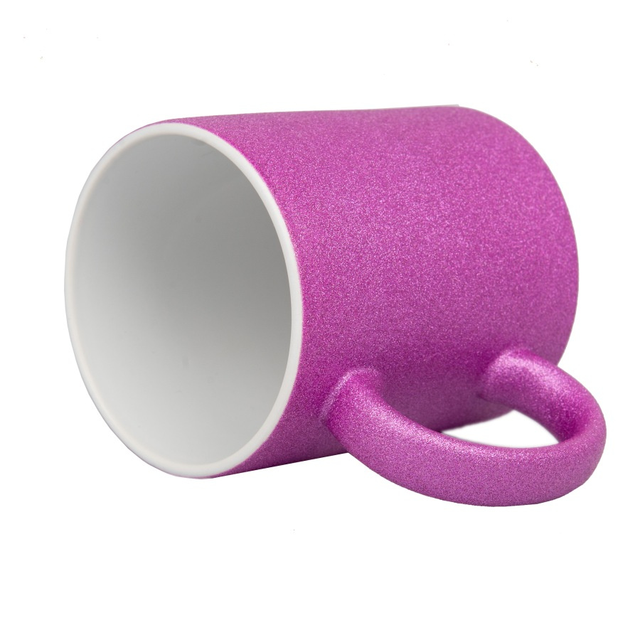 Kubek ceramiczny do nadruku metodą sublimacji. Zewnętrzna strona kubka pokryta jest specjalną powłoką do sublimacji.Kubek brokatowy fioletowo: