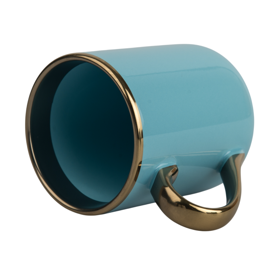 Kubek Elegant uchwyt i rant złoty - jasnoniebieski