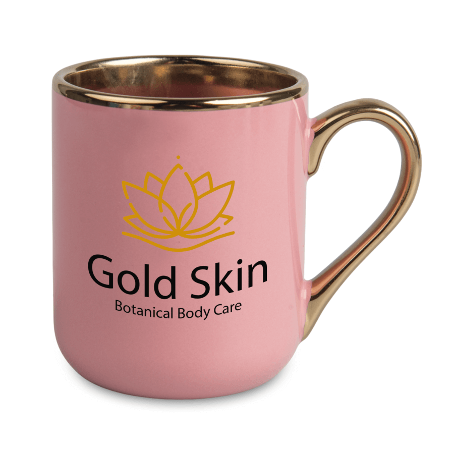 Kubek Elegant różowy (uchwyt i rant złoty):