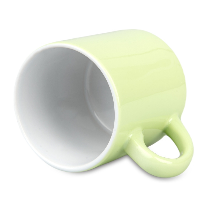 Kubek ceramiczny Mini do nadruku metodą sublimacji. Zewnętrzna strona kubka powleczona jest specjalną powłoką do sublimacji.Kubek Light Mini - błyszczący
