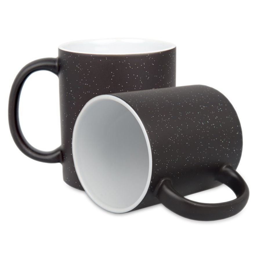Kubek ceramiczny do nadruku metodą sublimacji. Zewnętrzna strona kubka pokryta jest specjalną powłoką do sublimacji.Magiczne kubki zmieniają się pod wpływem temperatury, odsłaniając nadrukowane zdjęcie lub grafikę.