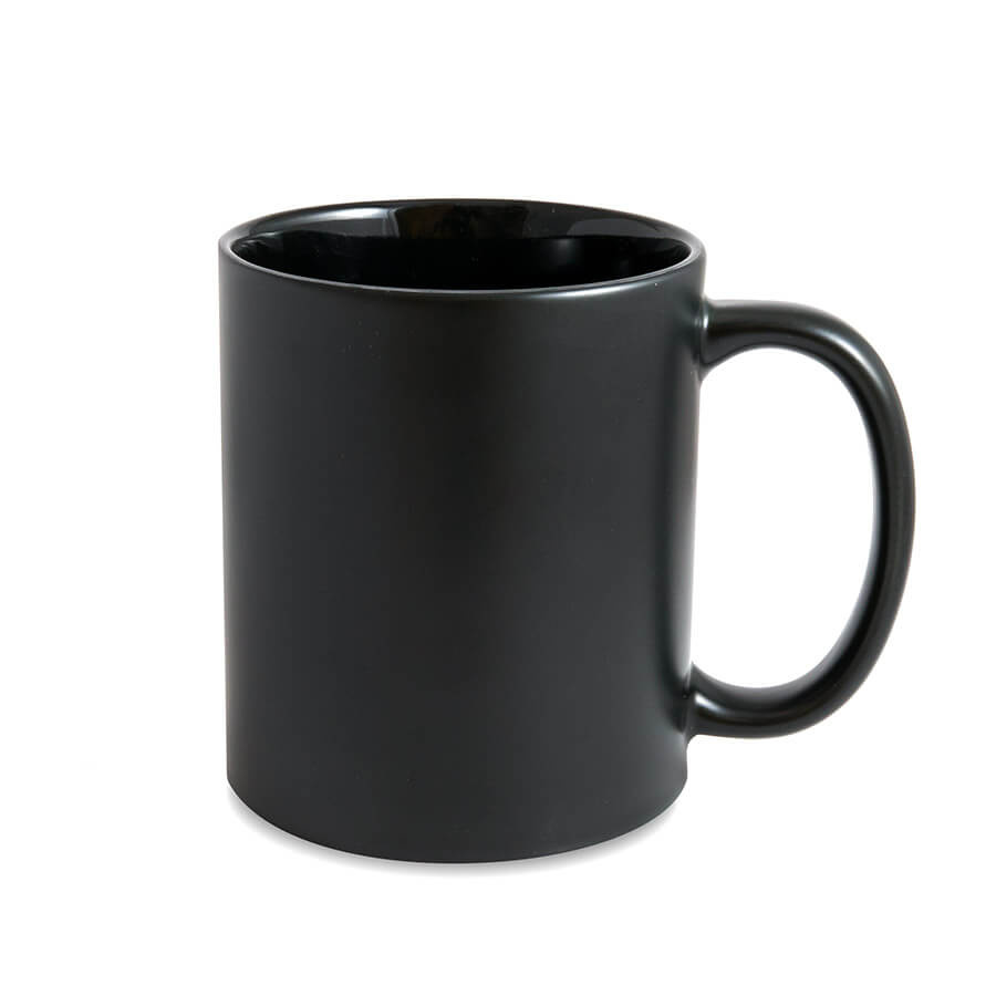 Kubek ceramiczny do nadruku metodą sublimacji. Zewnętrzna strona kubka pokryta jest specjalną powłoką do sublimacji. Magiczne kubki zmieniają się pod wpływem temperatury, odsłaniając nadrukowane zdjęcie lub grafikę.Kubek Magic czarny (matowy) z kolorowym środkiem: