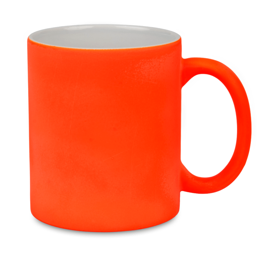 Kubek neonowy, ceramiczny z gumowaną powierzchnią do nadruku metodą sublimacji. Zewnętrzna strona kubka pokryta jest specjalną powłoką przeznaczoną do sublimacji.
