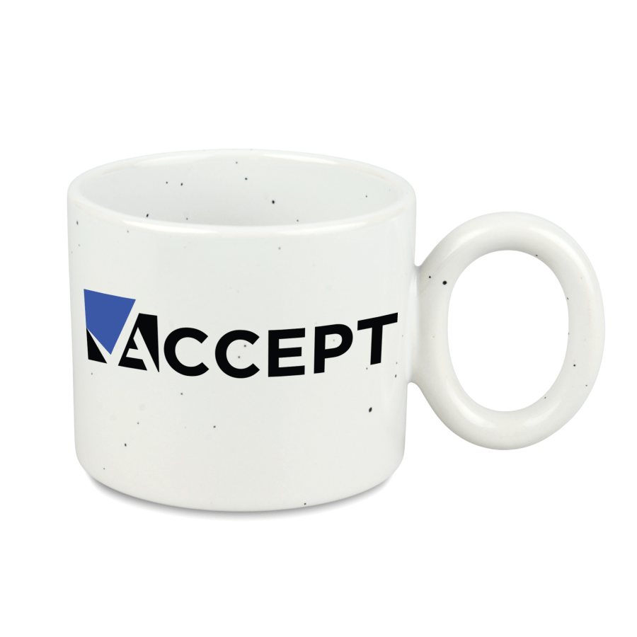 Kubek wyróżnia się unikalnym wzorem drobnych kropek, które nadają mu charakteru i rękodzielniczego stylu.