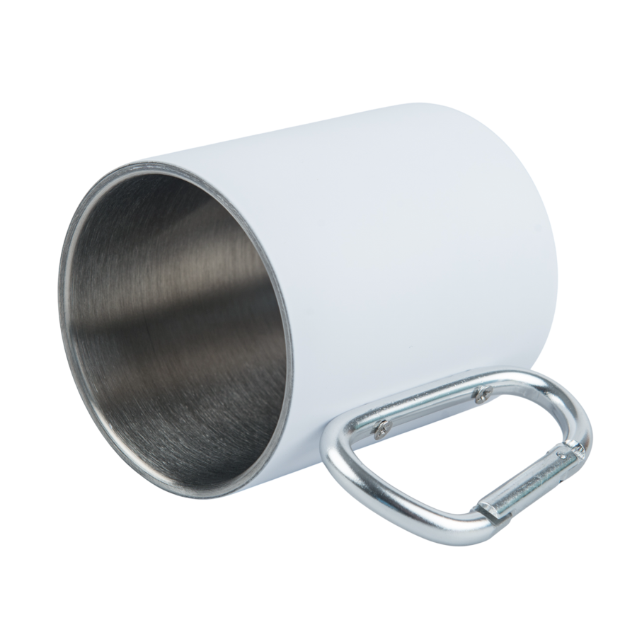Kubek stalowy 300 ml biały - uchwyt karabińczyk, do graweru