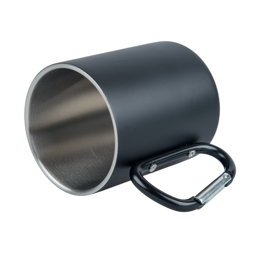 Kubek stalowy 300 ml czarny - uchwyt karabińczyk, do graweru