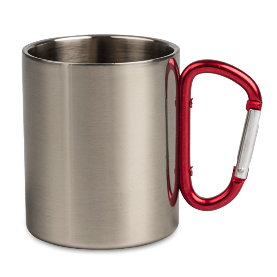Kubek stalowy 300 ml - uchwyt karabińczyk czerwony komplet 20 szt.