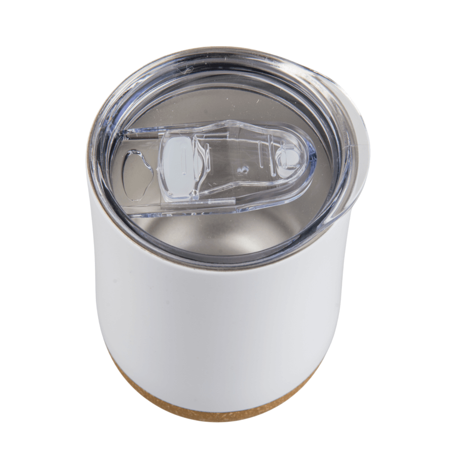 Korkowy spód może zapewniać dodatkową izolację termiczną lub chronić powierzchnię, na której kubek stoi.