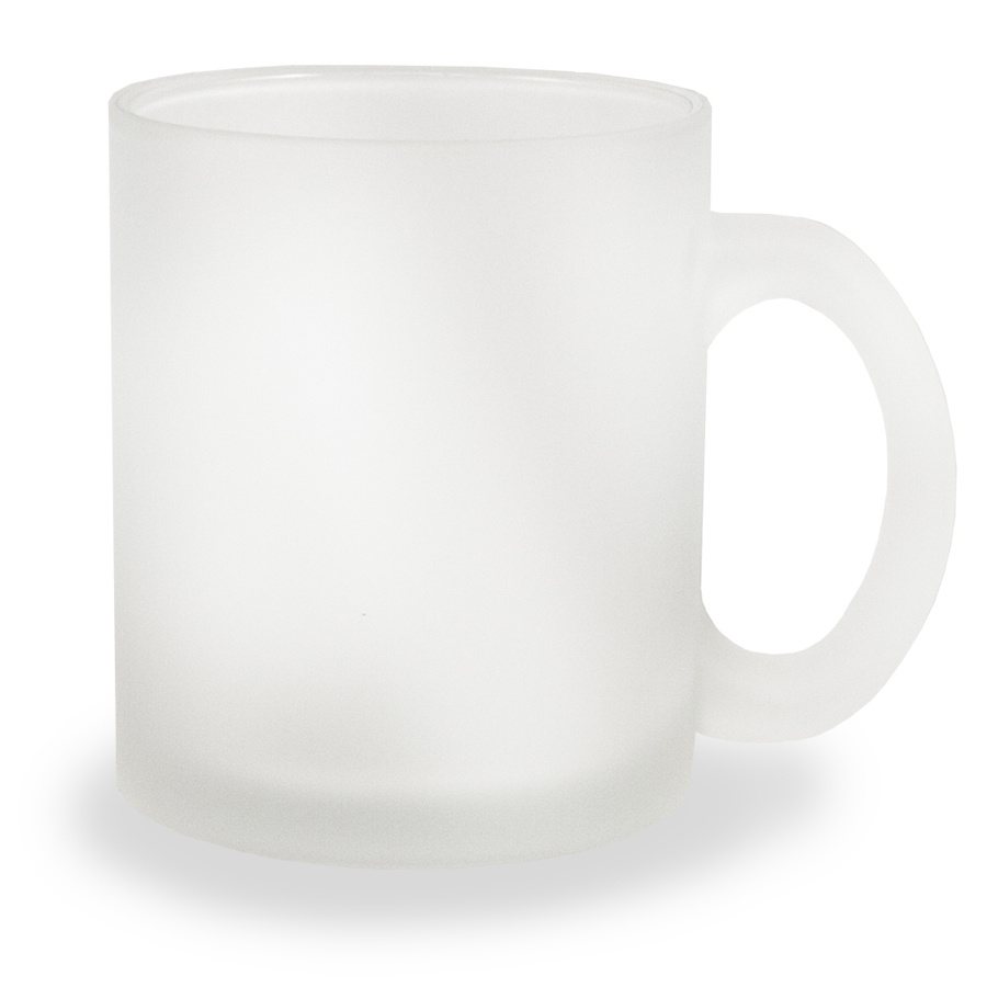 Kubek szklany szroniony do nadruku metodą sublimacji. Zewnętrzna strona kubka pokryta jest specjalną powłoką przeznaczoną do sublimacji.