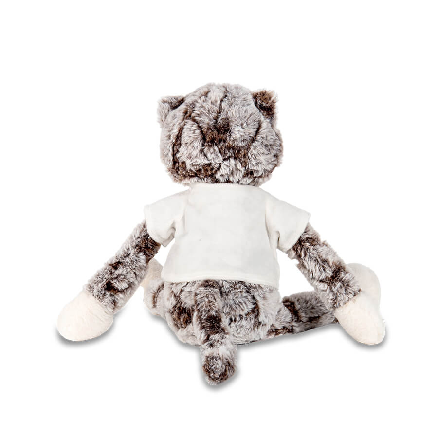 Maskotka kotek brązowoszary z koszulką przeznaczoną do nadruku metodą sublimacji- wysokość: 40 cm