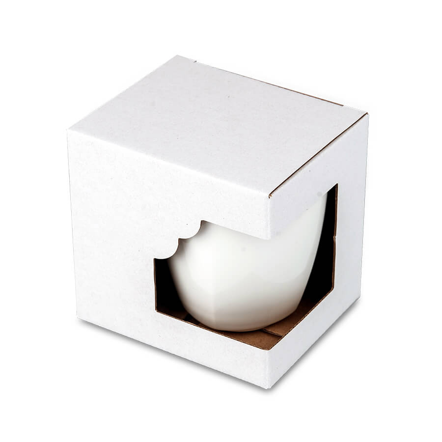 Opakowanie kartonowe do kubków Latte małe z wkładką i okienkiem - białeRozmiar:115x90x108 + wkładka