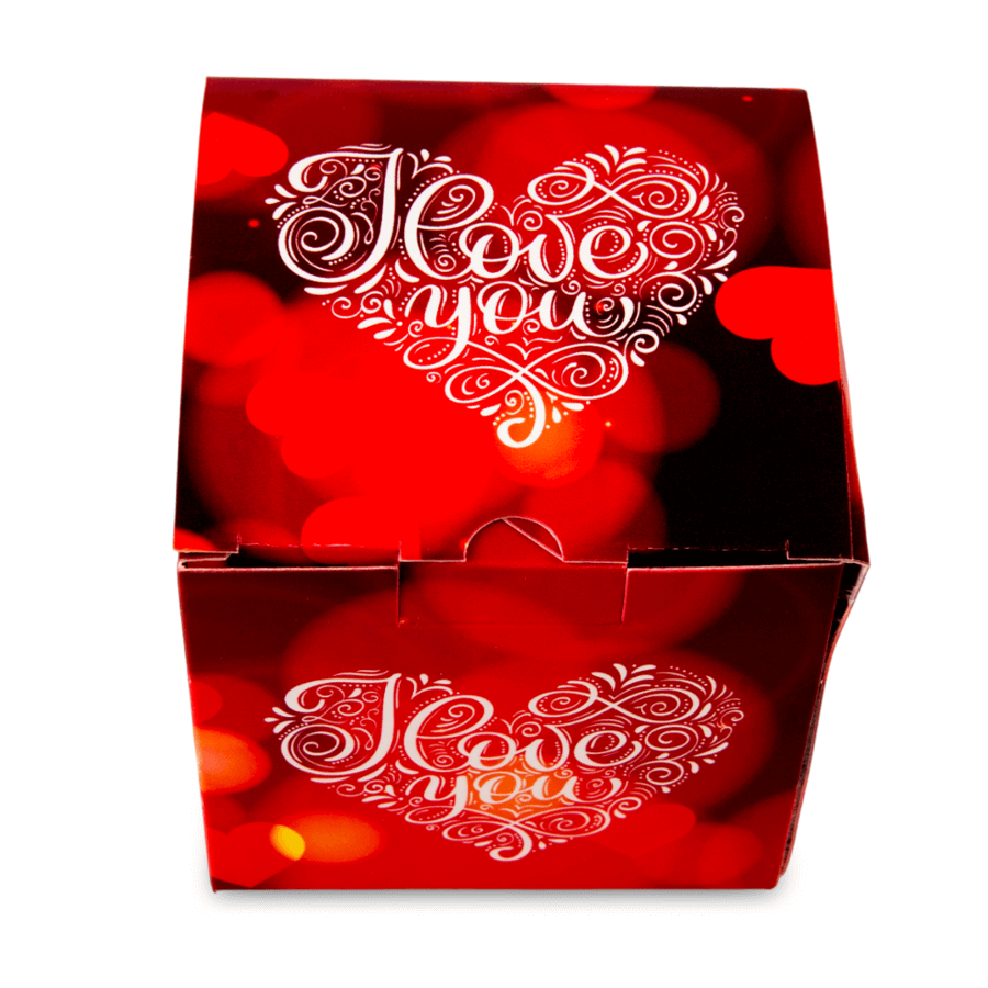 Opakowanie ozdobne do kubków z okienkiem - wzór LoveYou