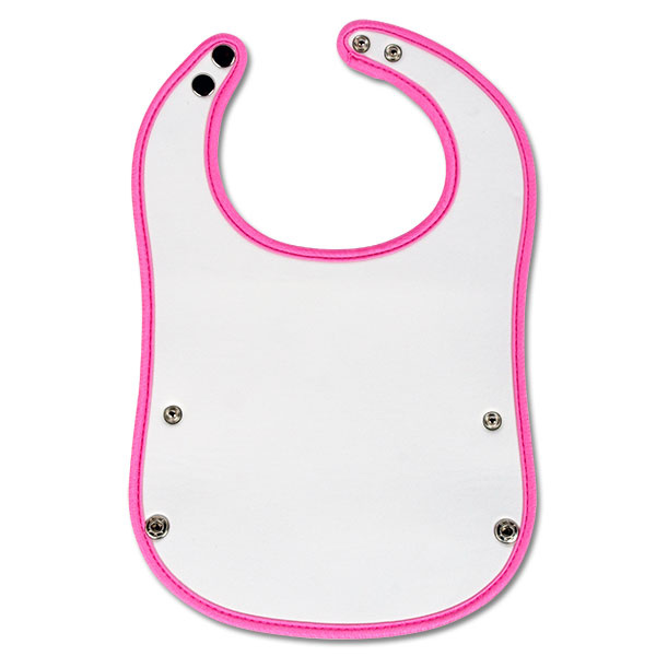 Śliniak neoprenowy dla dzieci różowy z białym polem do nadruku i różową lamówką. Przeznaczony jest do nadruku metodą sublimacji.Dzięki specjalnemu materiałowi śliniak jest bardziej odporny na zabrudzenia i wodę. Łatwy w praniu i miękki w dotyku.