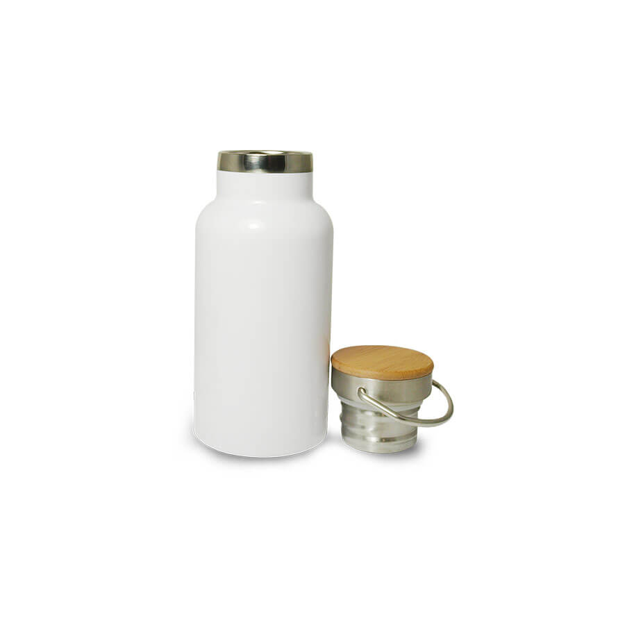 Stalowa termo butla 350 ml z bambusową zakrętką - biała